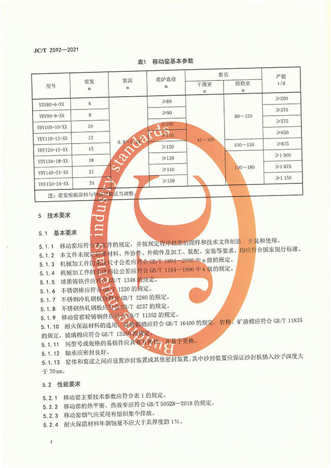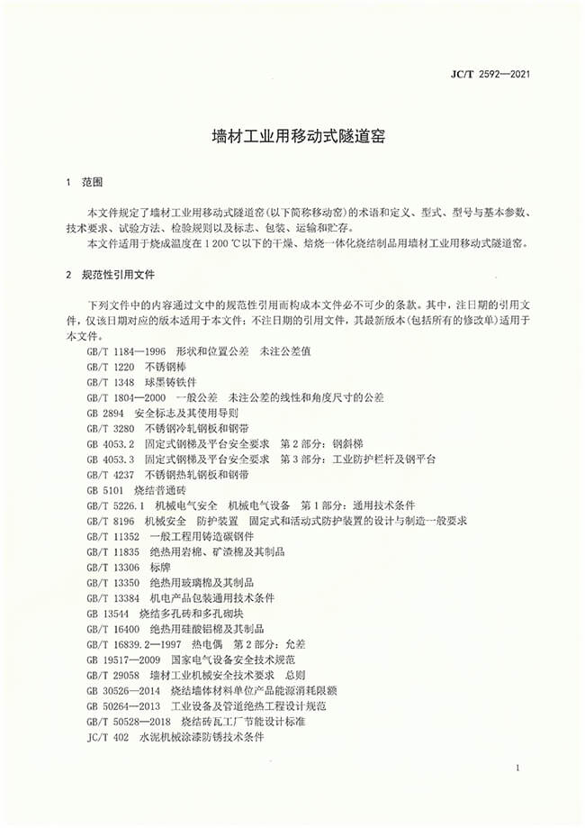 墻材用移動(dòng)式隧道窯行業(yè)標(biāo)準(zhǔn)
