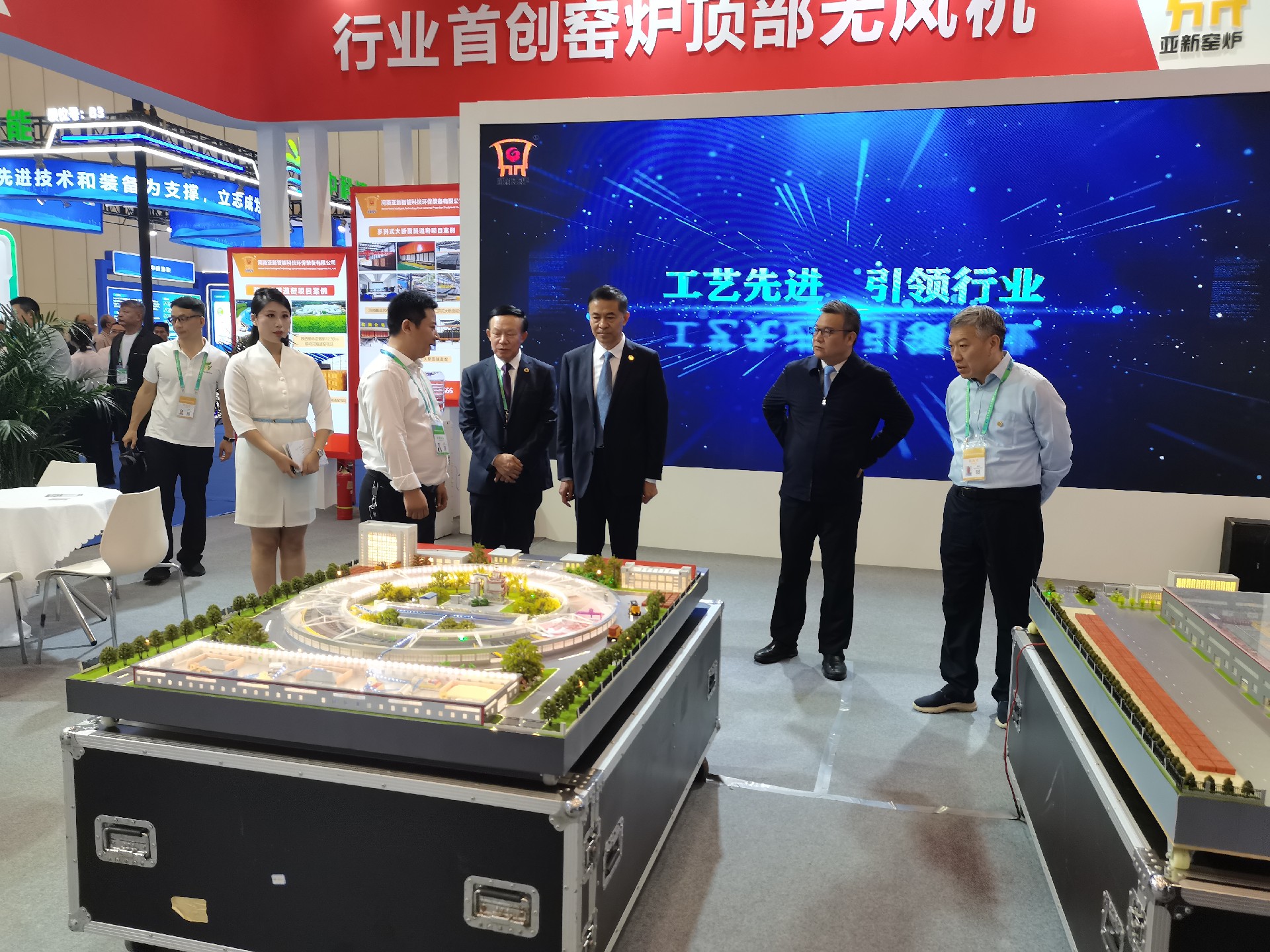 河南亞新窯爐有限公司受邀參展,亞新公司董事長劉勤鋒帶隊參加此次洽談會,9月26日省人大常委會副主任李公樂,中國環(huán)境保護產(chǎn)業(yè)協(xié)會黨委書記郭承站蒞臨亞新展位,董事長劉勤鋒向其詳細介紹亞新公司大宗固廢節(jié)能環(huán)保智能裝備先進技術(shù)、自動化智能化控制及整個綠色新材料裝備制造循環(huán)經(jīng)濟產(chǎn)業(yè)園,省領(lǐng)導(dǎo)對亞新環(huán)保裝備技術(shù)以及綠色新材料裝備制造循環(huán)經(jīng)濟產(chǎn)業(yè)園表示高度認(rèn)可,并鼓勵河南本土企業(yè)堅定不移抓好科技創(chuàng)新,提升行業(yè)市場競爭力,助力創(chuàng)新驅(qū)動高質(zhì)量發(fā)展。